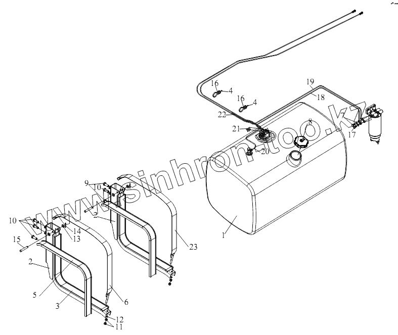Каталог запасных частей к технике: FAW CA 5250 (GJBP66K2T1E4). Топливный бак и топливопровод