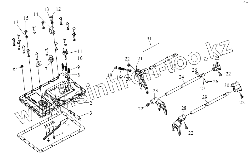 Каталог запасных частей к технике: FAW CA 5250 (GJBP66K2T1E4). Верхняя крышка (CA10TA160M КПП)