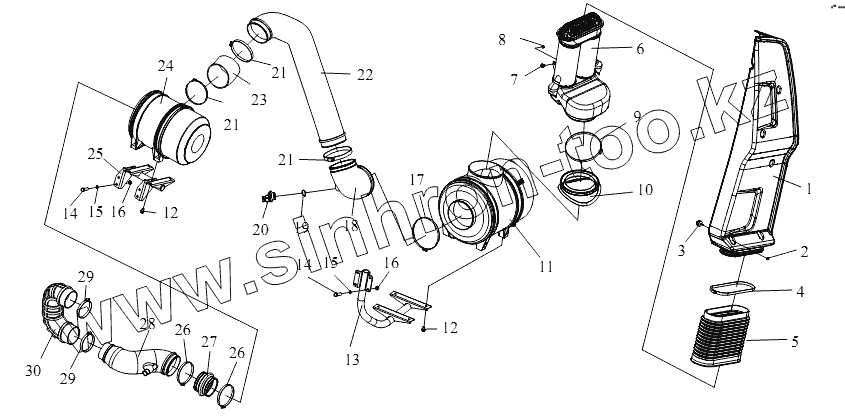 Впускная резиновая труба – выход воздушного фильтра