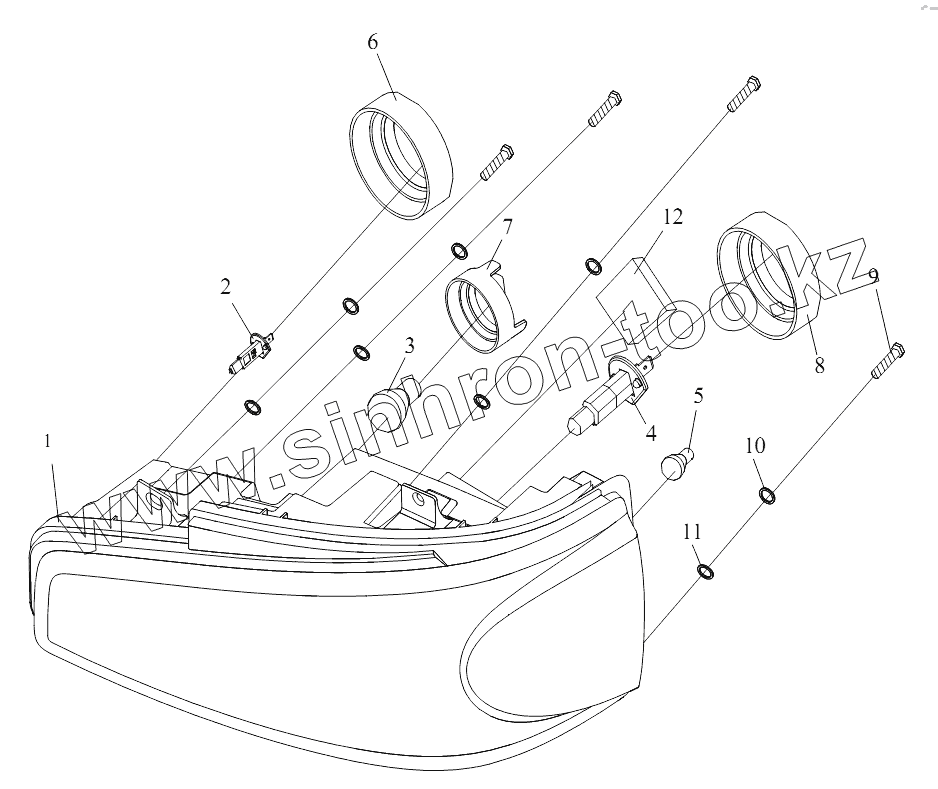 Каталог запасных частей к технике: FAW CA 5250 (JSQP64K1T1E4). Передняя комбинированная фара