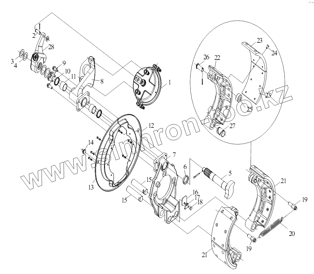 | 8 | 3501127-362 | Кронштейн переднего левого тормозного кулачка | |
