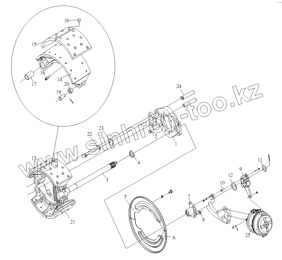 Каталог запасных частей к технике: FAW CA 5250 (JSQP64K1T1E4). Тормоз заднего моста