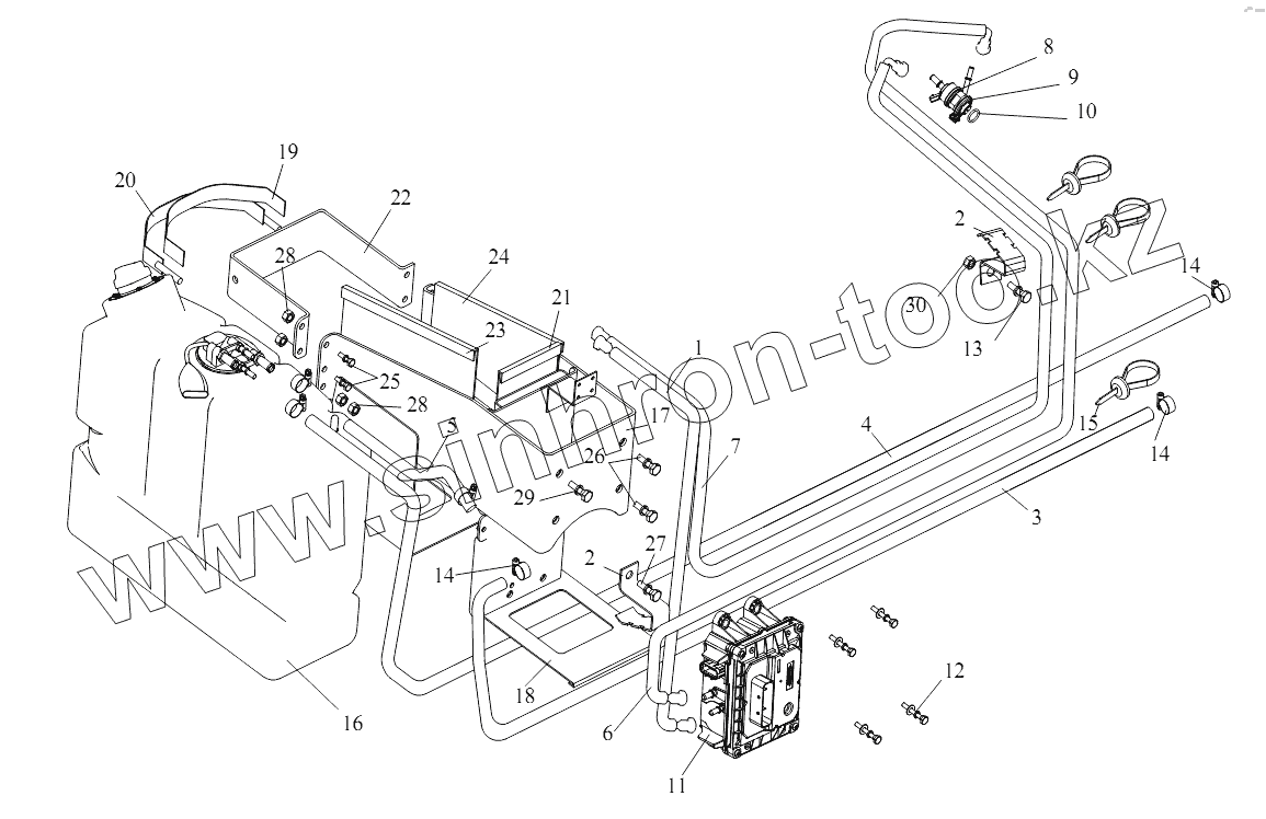 Возвратный водопровод подогревателя мочевины от бака для мочевины к двигателю