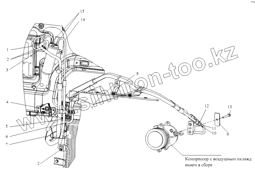 Металлический трубопровод высокого давления в сборе от ресивера к охладителю