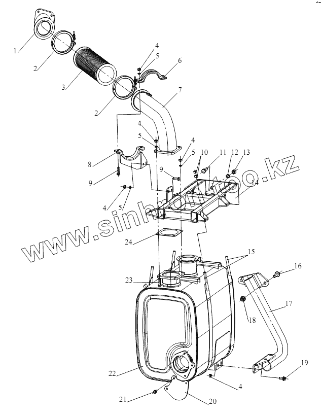 Каталог запасных частей к технике: FAW CA 5250 (JSQP64K1T1E4). Выпускная система