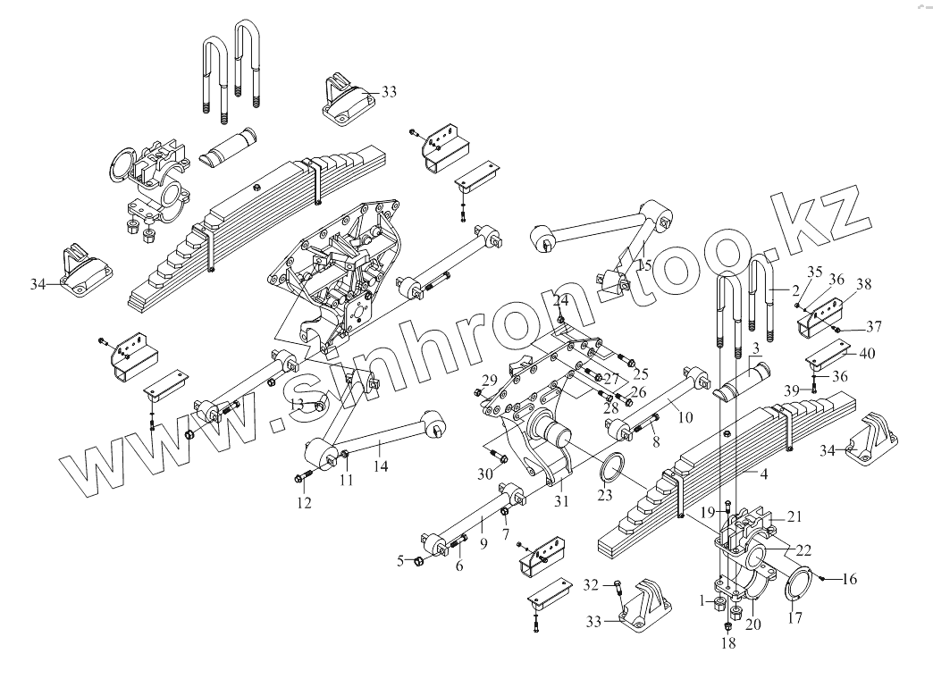 | 33 | 2912445A377 | Опора задней рессоры в сборе - левая сторона среднего моста, правая сторона левого моста | |
