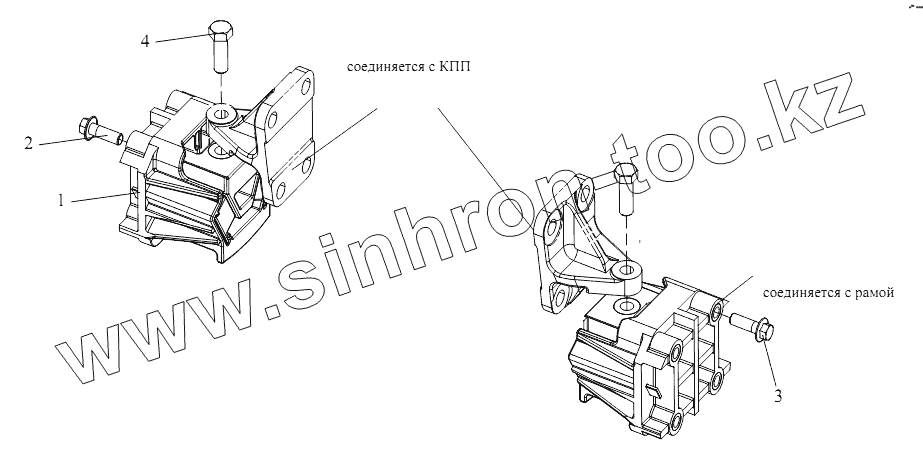 Каталог запасных частей к технике: FAW CA 5250 (JSQP64K1T1E4). Задняя подвеска двигателя