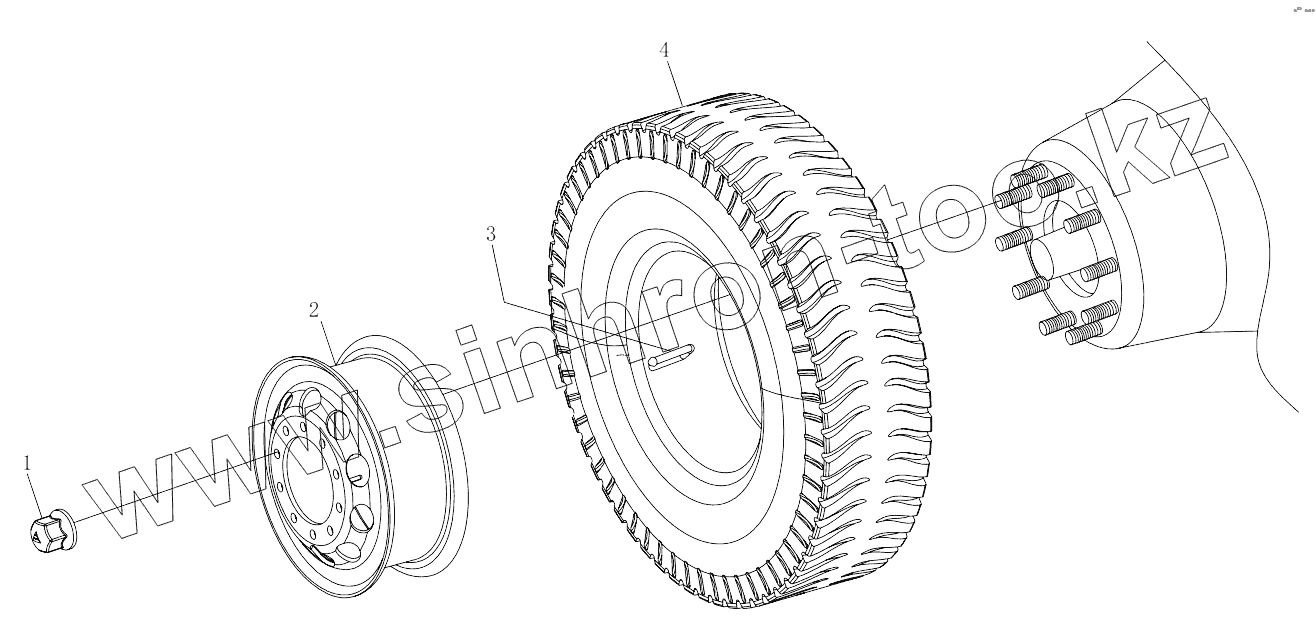Каталог запасных частей к технике: Foton 3253DLPJE-0RZA01. 1S12403110000 Wheel and tyre