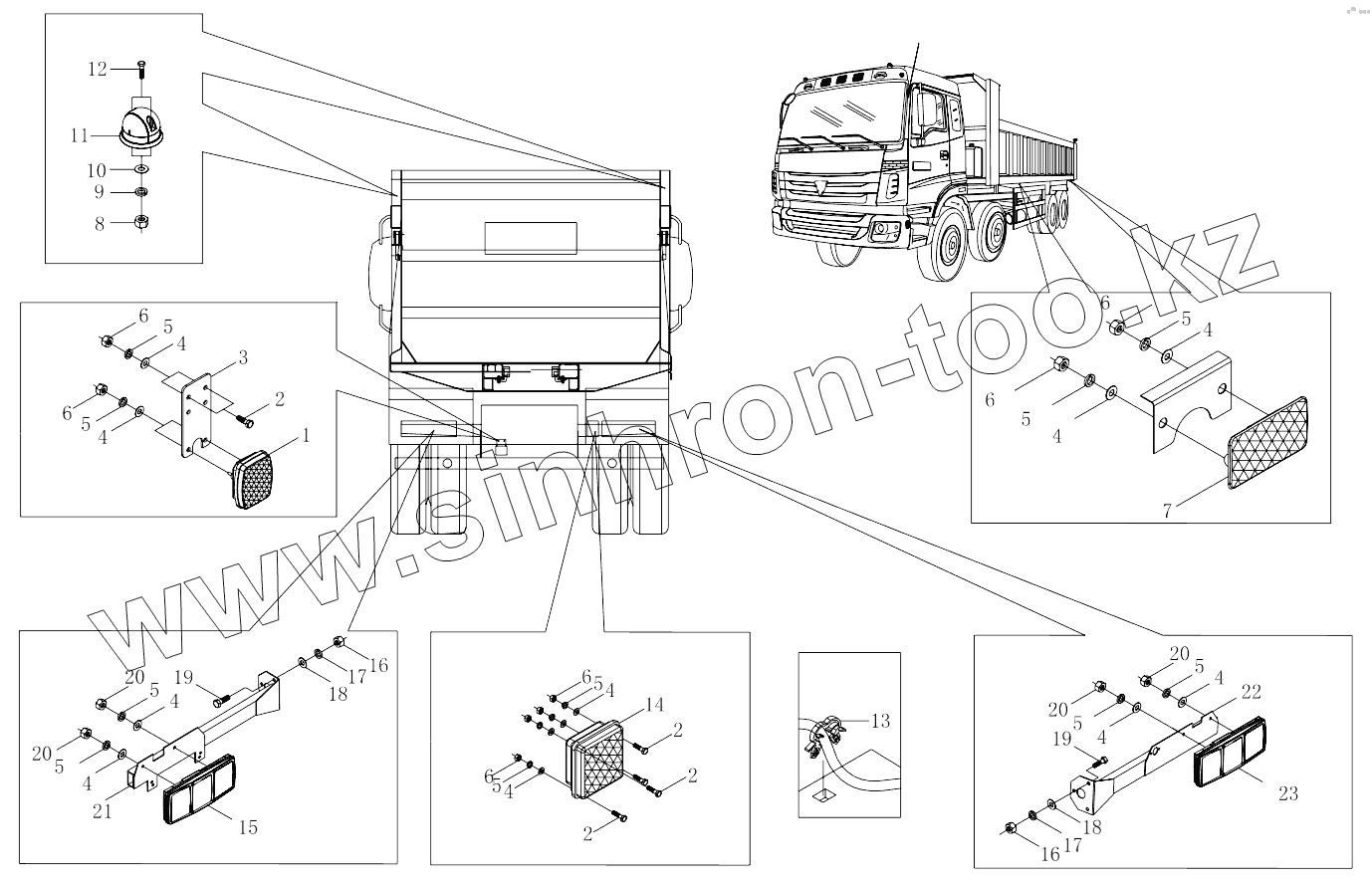 Каталог запасных частей к технике: Foton 3253DLPJE-0RZA01. 1S32413650000 Rear lamps