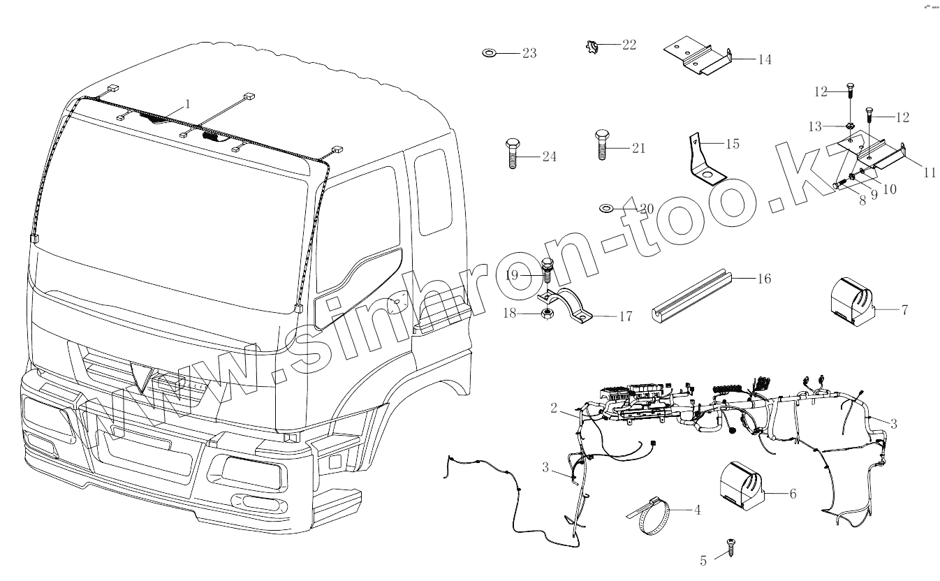 Каталог запасных частей к технике: Foton 3253DLPJE-0RZA01. 1SB2493740419 Body wire