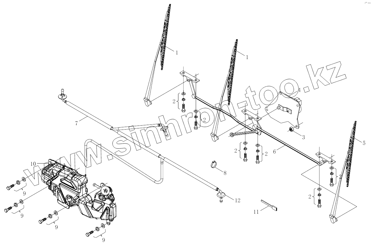 Каталог запасных частей к технике: Foton 3253DLPJE-0RZA01. 1SB2495250701 Wiper and scrubber