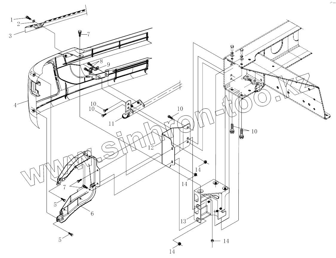 Каталог запасных частей к технике: Foton 3253DLPJE-0RZA01. 1SB2495310212 Bumper module