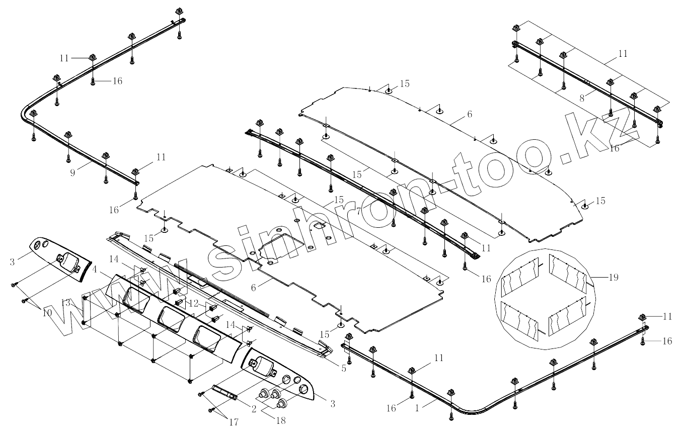 Каталог запасных частей к технике: Foton 3253DLPJE-0RZA01. 1SB2495720404 Roof accessories