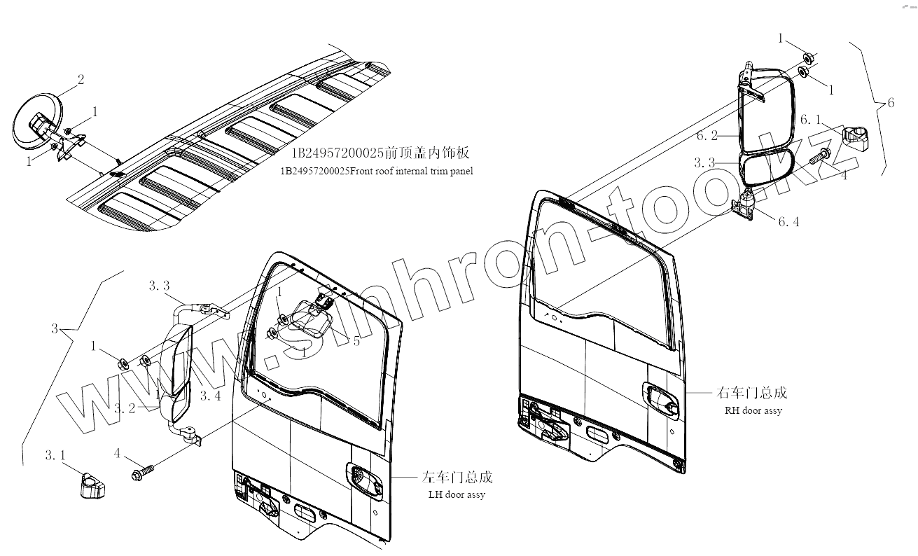 Каталог запасных частей к технике: Foton 3253DLPJE-0RZA01. 1SB2498210502 Rear-view mirror