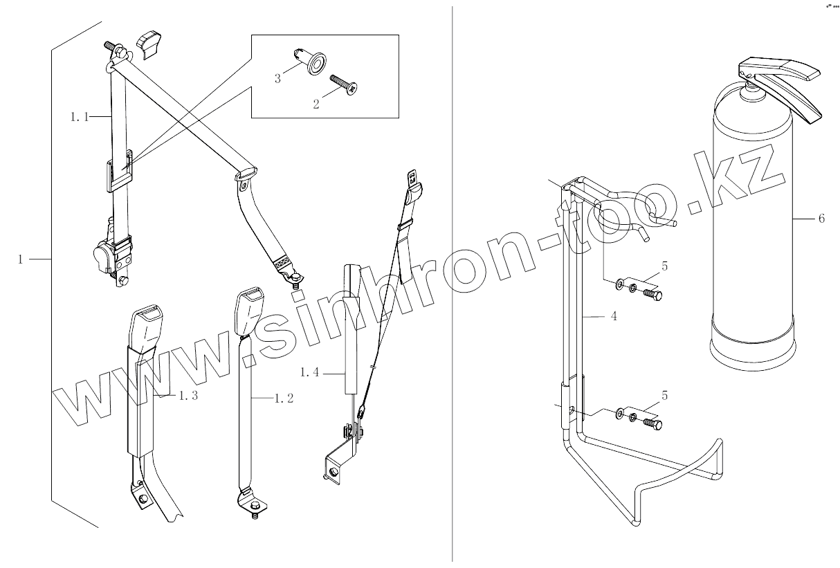 Каталог запасных частей к технике: Foton 3253DLPJE-0RZA01. 1SB2498220101 Seat belt, 1SB2498250101 Fire extinguisher
