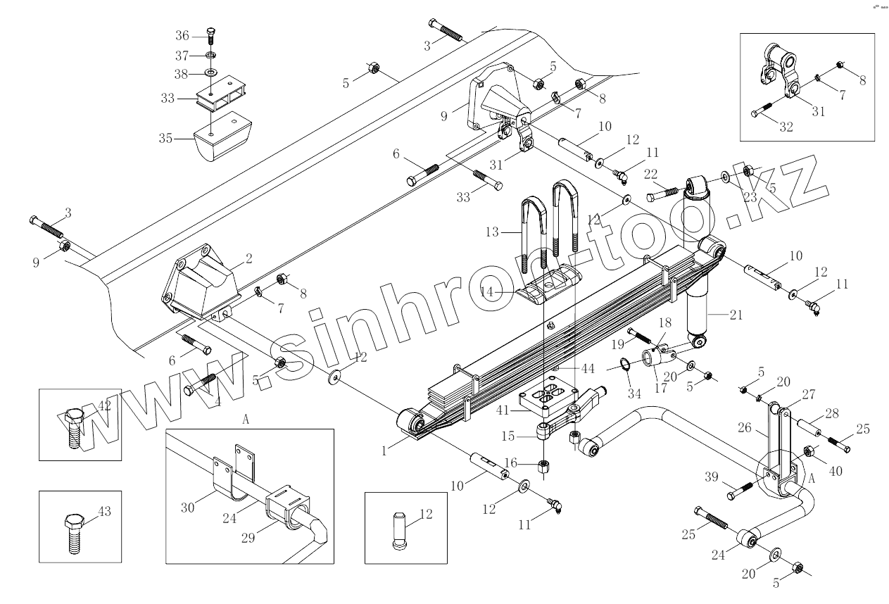 Каталог запасных частей к технике: Foton 4189SLFKA-AEZA01. 1S41892950203 Rear suspension