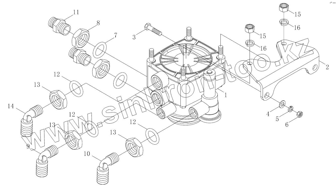 Каталог запасных частей к технике: Foton 4189SLFKA-AEZA01. 1S41893568001 Brake line-trailer valve module