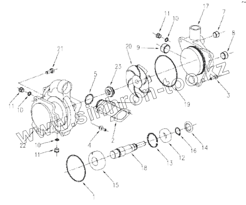 Каталог запасных частей к технике: Foton 4189SLFKA-AEZA01. 1S42591000201 Engine-water pump assembly