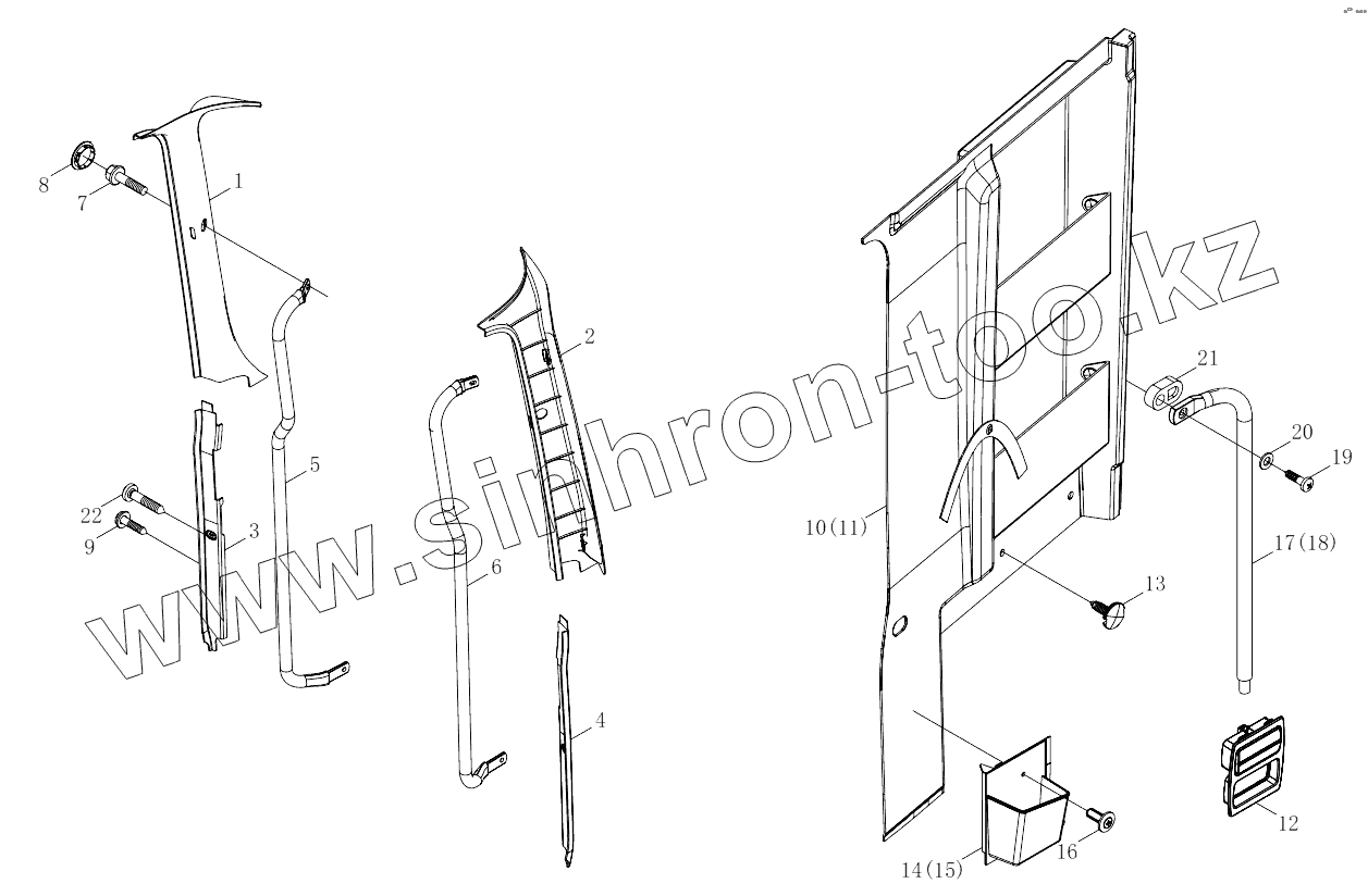 Каталог запасных частей к технике: Foton 4189SLFKA-AEZA01. 1SB2485420001 Interior trim, side wall