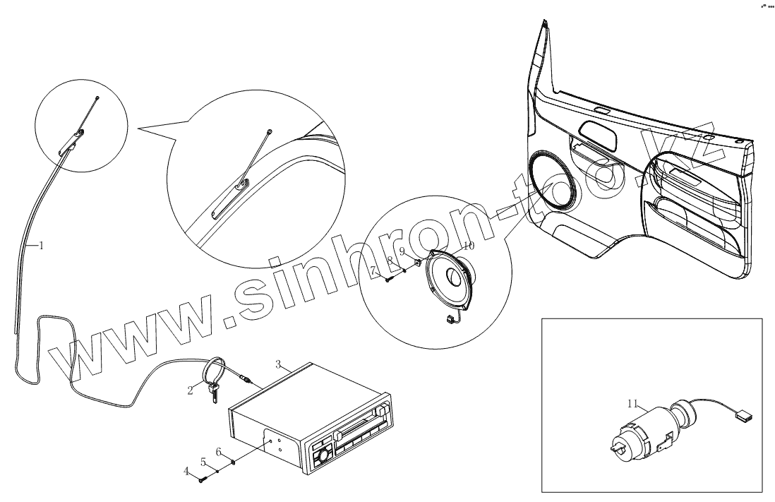 Каталог запасных частей к технике: Foton BJ1039, BJ1049 (Aumark III). Аксессуары электроаппарата 1SB1803780103, Аудио 1SB1807910109
