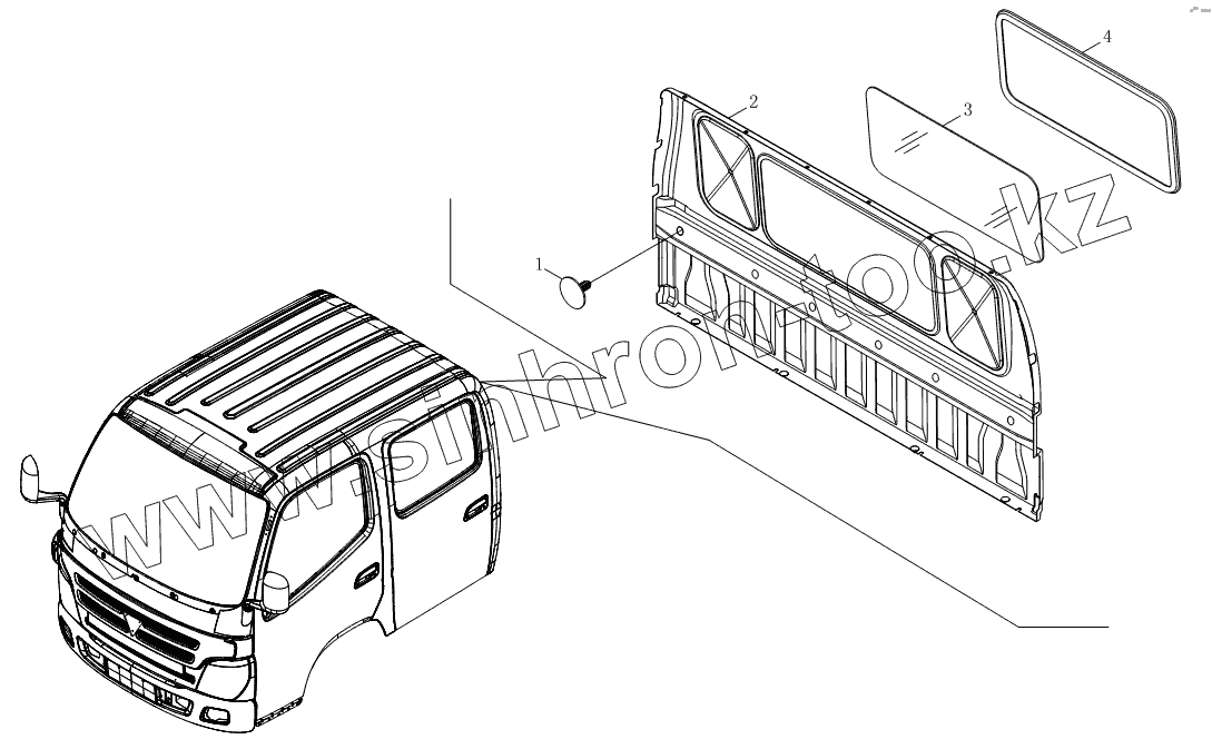 Каталог запасных частей к технике: Foton BJ1039, BJ1049 (Aumark III). Аксессуары задней обшивки 1SB1805610102, 1SB1805610101
