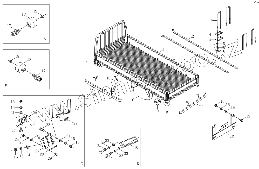 Каталог запасных частей к технике: Foton BJ1039, BJ1049 (Aumark III). Грузовая платформа 1SB1808500003