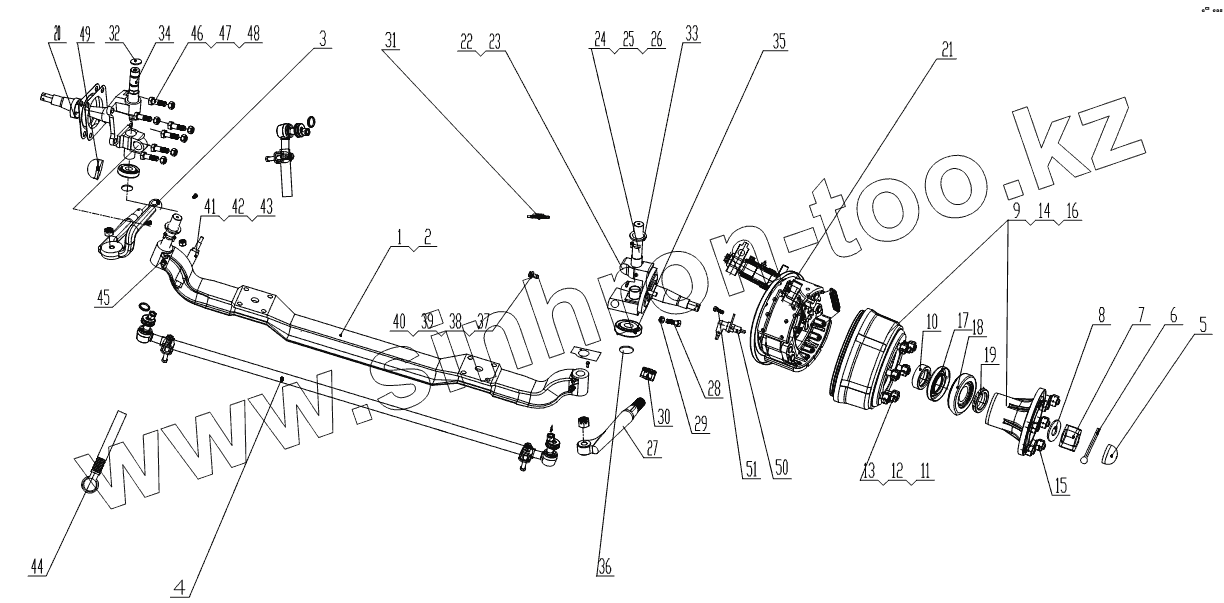 Каталог запасных частей к технике: Foton BJ1039, BJ1049 (Aumark III). Передний вал 1S10393000118