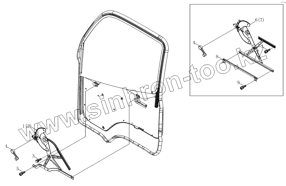 Каталог запасных частей к технике: Foton BJ1039, BJ1049 (Aumark III). Подъемный механизм стекла 1SB1806140106, 1SB1806140105