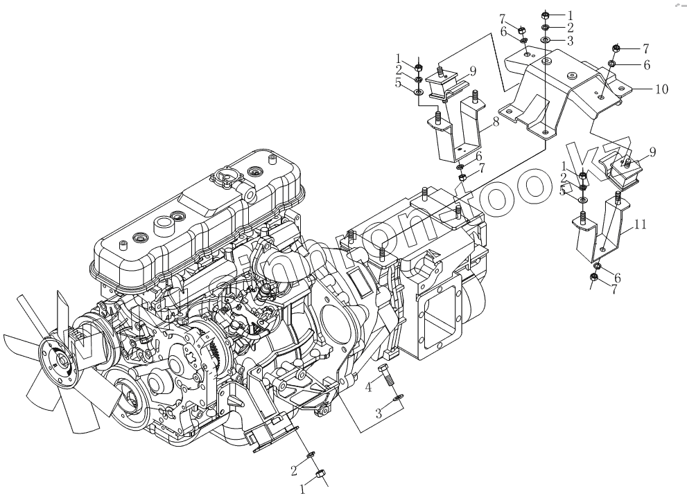 Каталог запасных частей к технике: Foton BJ1039, BJ1049 (Aumark III). Подвеска силового комплекта 1S10391010104