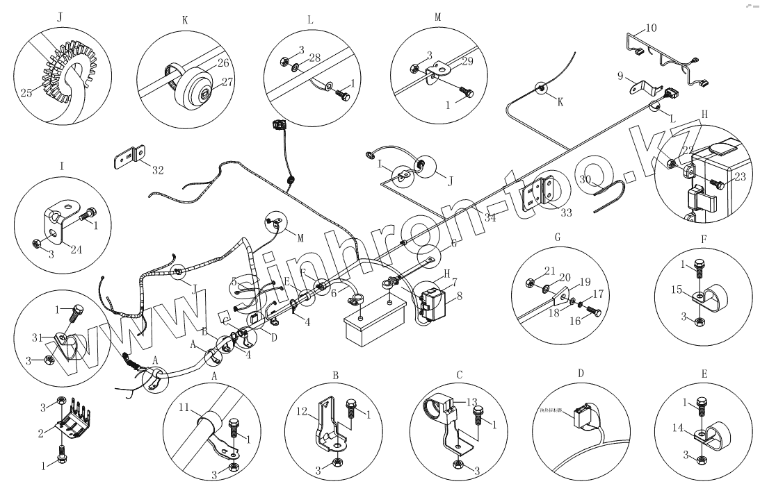 Каталог запасных частей к технике: Foton BJ1039, BJ1049 (Aumark III). Пучок проводов шасси 1S10393623058