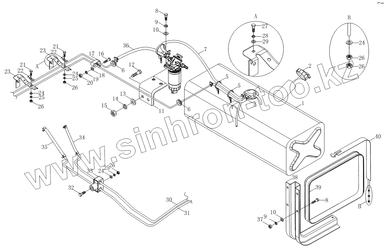 Каталог запасных частей к технике: Foton BJ1039, BJ1049 (Aumark III). Система топлива 1S10491100107