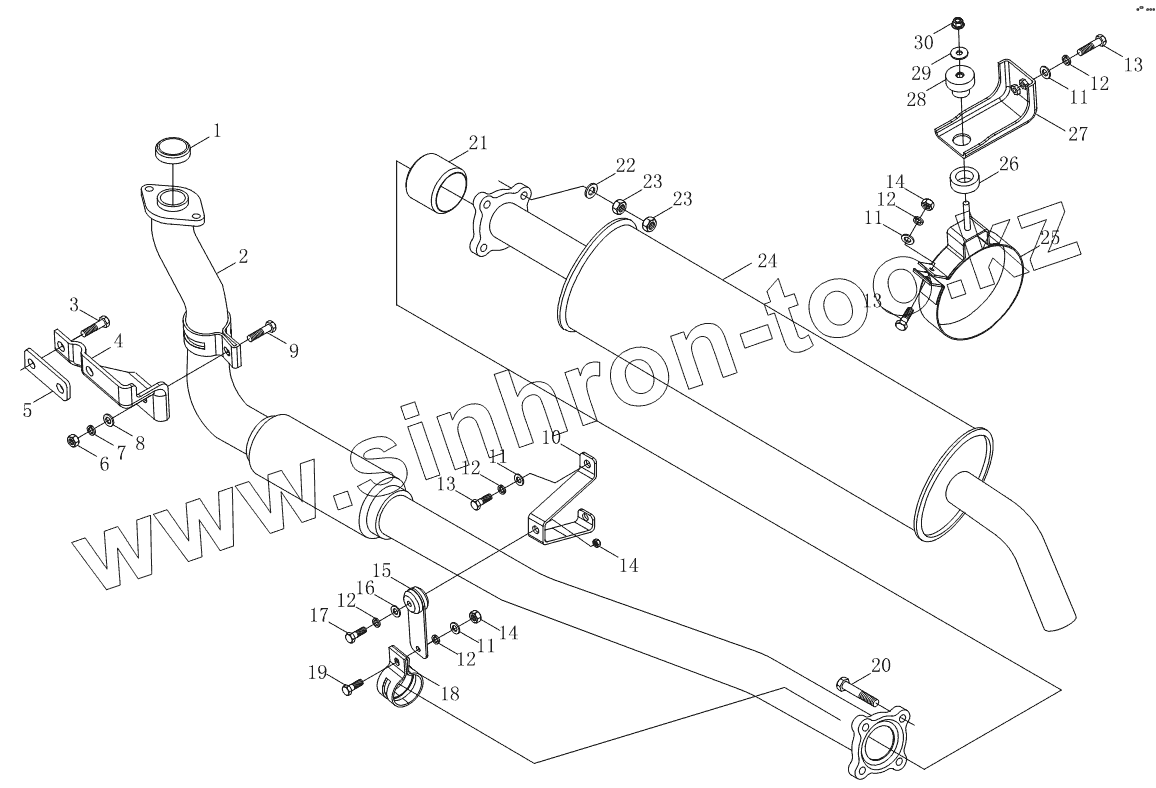 Каталог запасных частей к технике: Foton BJ1039, BJ1049 (Aumark III). Выпускная установка 1S10491200171