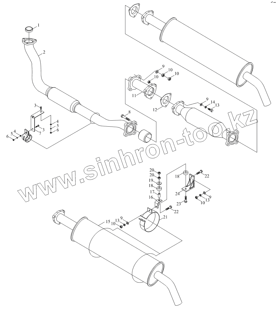 Каталог запасных частей к технике: Foton BJ1041, BJ1069 (Ollin). 1S10411200102 Выпускное устройство