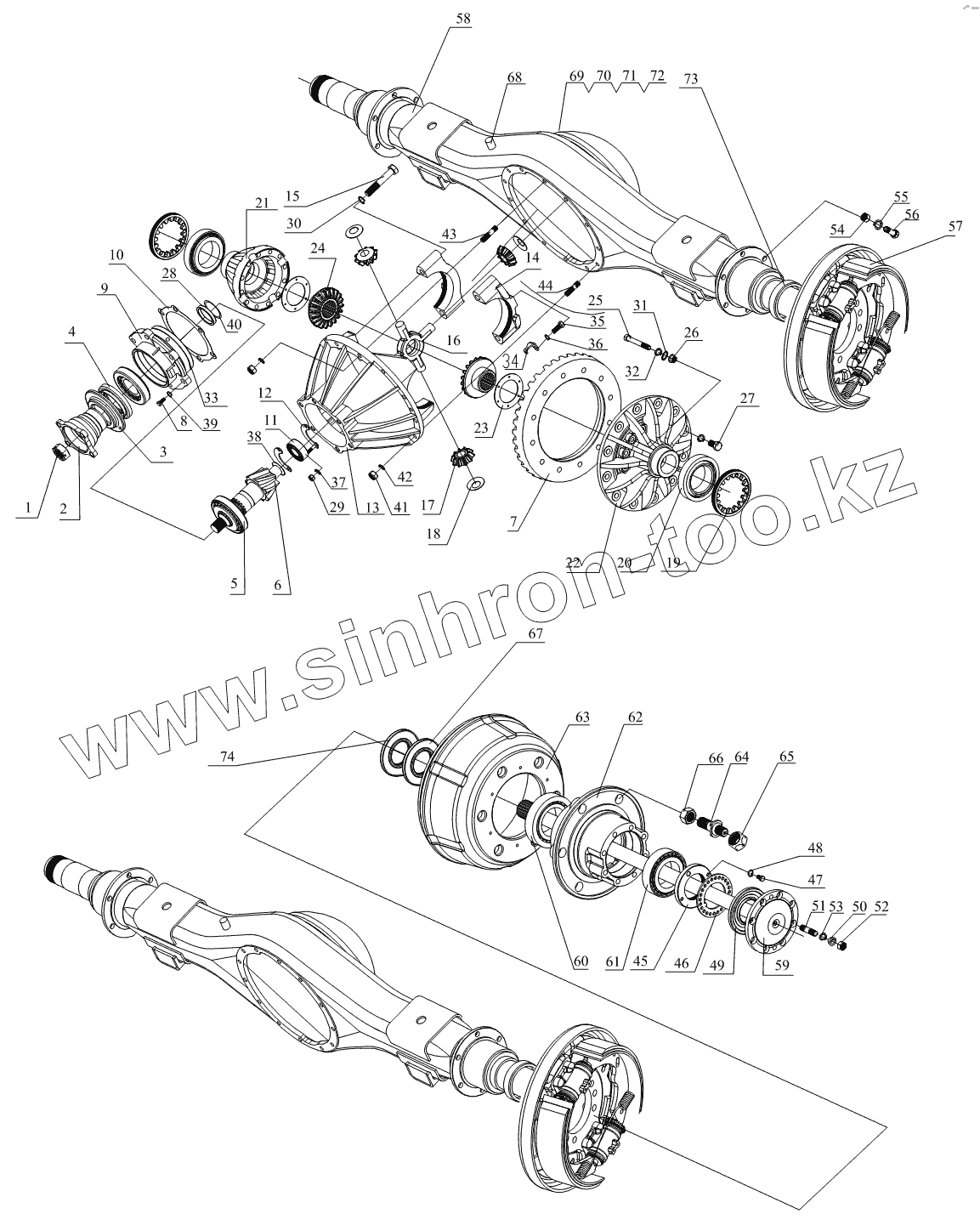 Каталог запасных частей к технике: Foton BJ1041, BJ1069 (Ollin). 1S10492400134 Задний мост