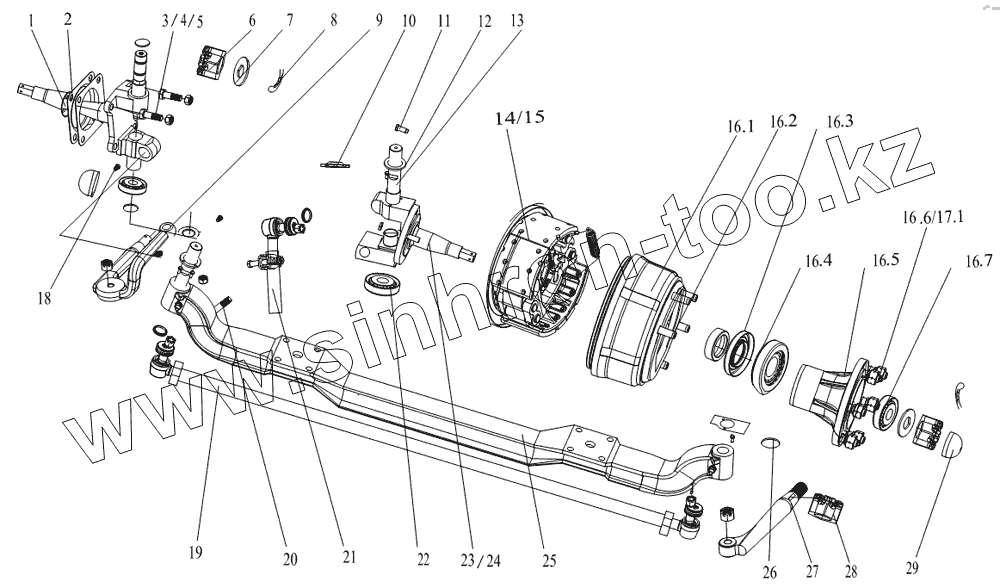 Каталог запасных частей к технике: Foton BJ1041, BJ1069 (Ollin). 1S10493000116 Передний мост