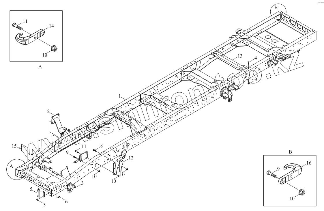 Каталог запасных частей к технике: Foton BJ1041, BJ1069 (Ollin). 1S10592800101, 1S10492800118 Рама
