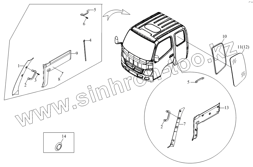 Каталог запасных частей к технике: Foton BJ1041, BJ1069 (Ollin). 1SB1805410108 Агрегат боковой панели