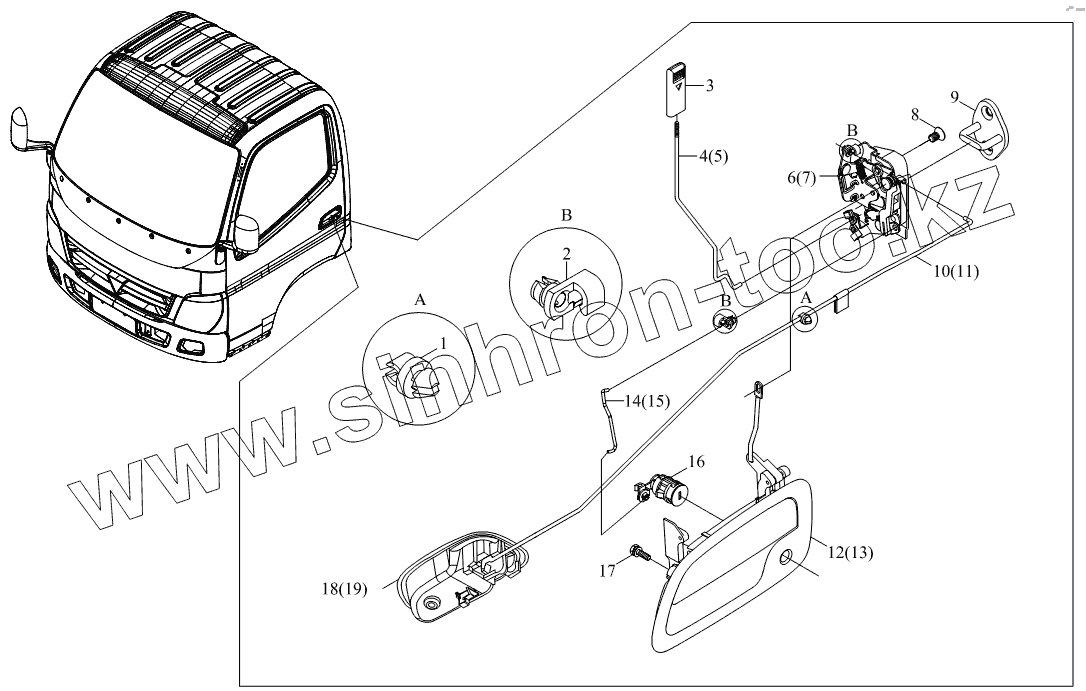 Каталог запасных частей к технике: Foton BJ1041, BJ1069 (Ollin). 1SB1806150107 Дверной замок