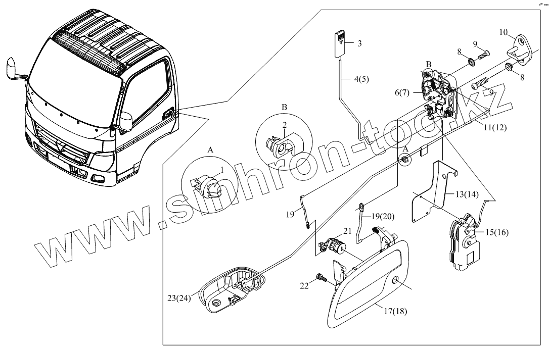 Каталог запасных частей к технике: Foton BJ1041, BJ1069 (Ollin). 1SB1806150109 Дверной замок