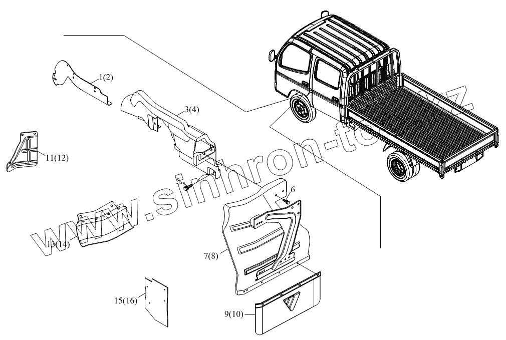 Каталог запасных частей к технике: Foton BJ1041, BJ1069 (Ollin). 1SB1808430122 Брызговик колеса