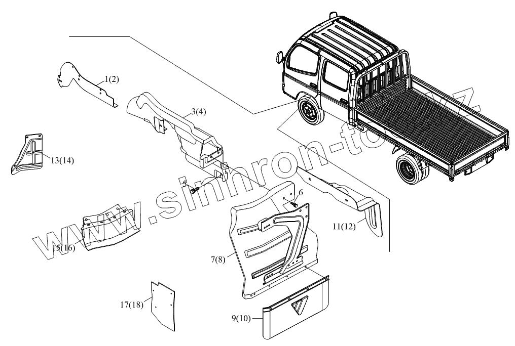 Каталог запасных частей к технике: Foton BJ1041, BJ1069 (Ollin). 1SB1808430123 Брызговик колеса