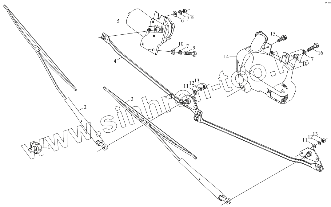 Каталог запасных частей к технике: Foton BJ1041, BJ1069 (Ollin). 1SB2005210101 Стеклоочиститель и промыватель