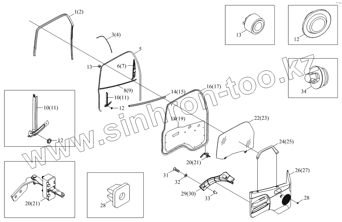 Каталог запасных частей к технике: Foton BJ1041, BJ1069 (Ollin). 1SB2006120101,1SB2006120102 Агрегаты передних боковых дверей