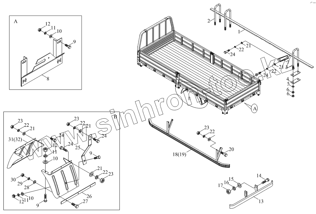 Каталог запасных частей к технике: Foton BJ1041, BJ1069 (Ollin). 1SB2008590105 Агрегат для монтажа кузова-фургона