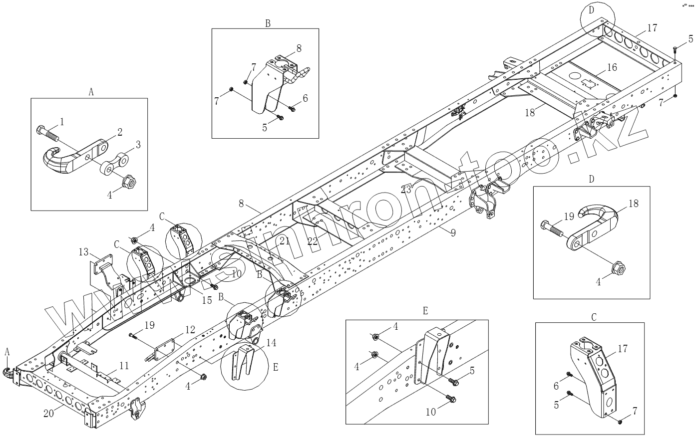 Каталог запасных частей к технике: Foton BJ1051, BJ1061 (Aumark). 1S10512800104 Рама