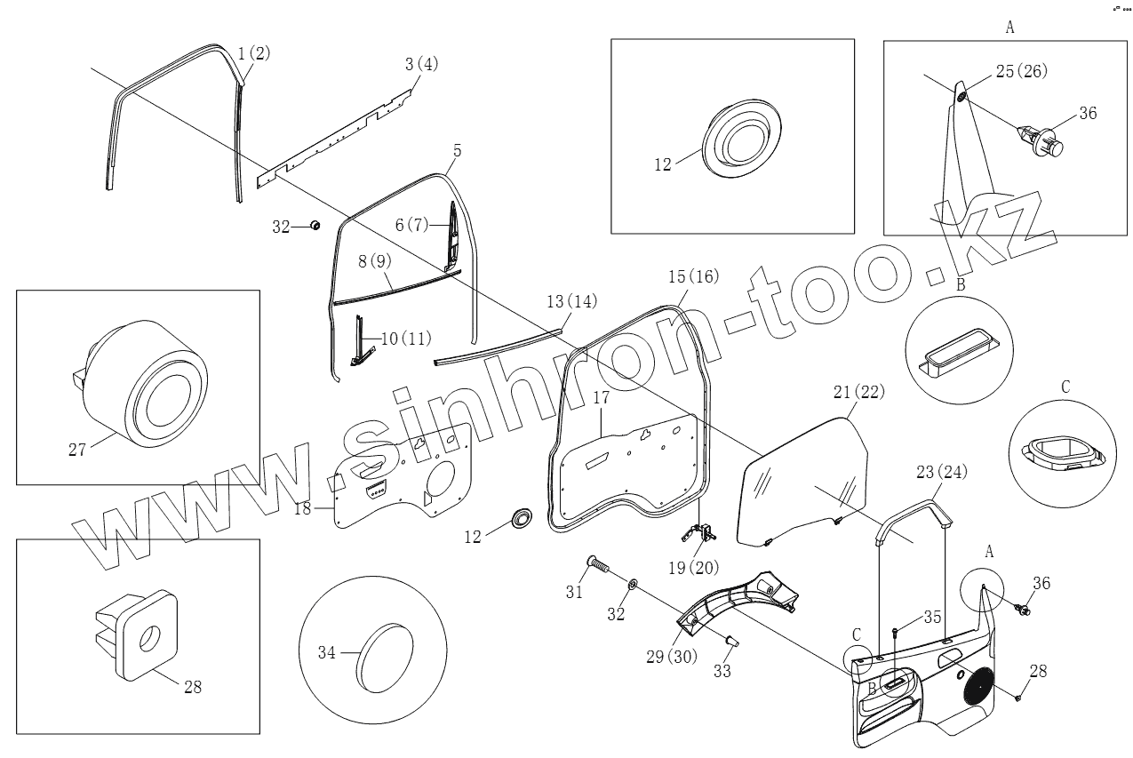 Каталог запасных частей к технике: Foton BJ1051, BJ1061 (Aumark). 1SB1806120103 Принадлежности передних боковых дверей