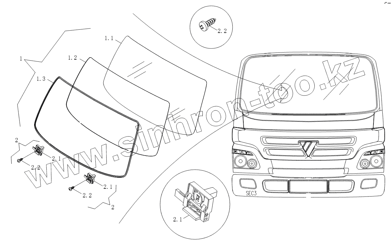 Каталог запасных частей к технике: Foton BJ1051, BJ1061 (Aumark). 1SB2005210103 Запчасти ветрового стекла