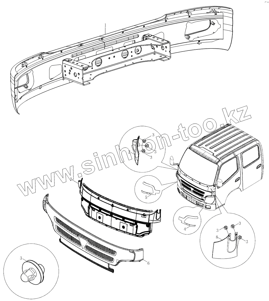 Каталог запасных частей к технике: Foton BJ1051, BJ1061 (Aumark). 1SB2005310105 Принадлежности переднего оперения