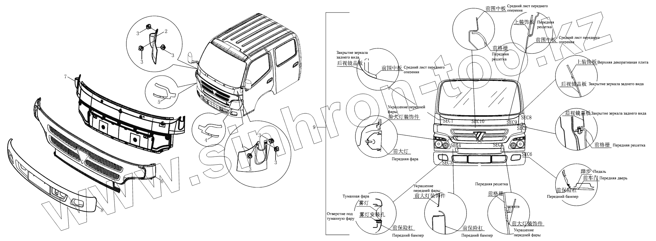 Каталог запасных частей к технике: Foton BJ1051, BJ1061 (Aumark). 1SB2005310106 Принадлежности переднего оперения