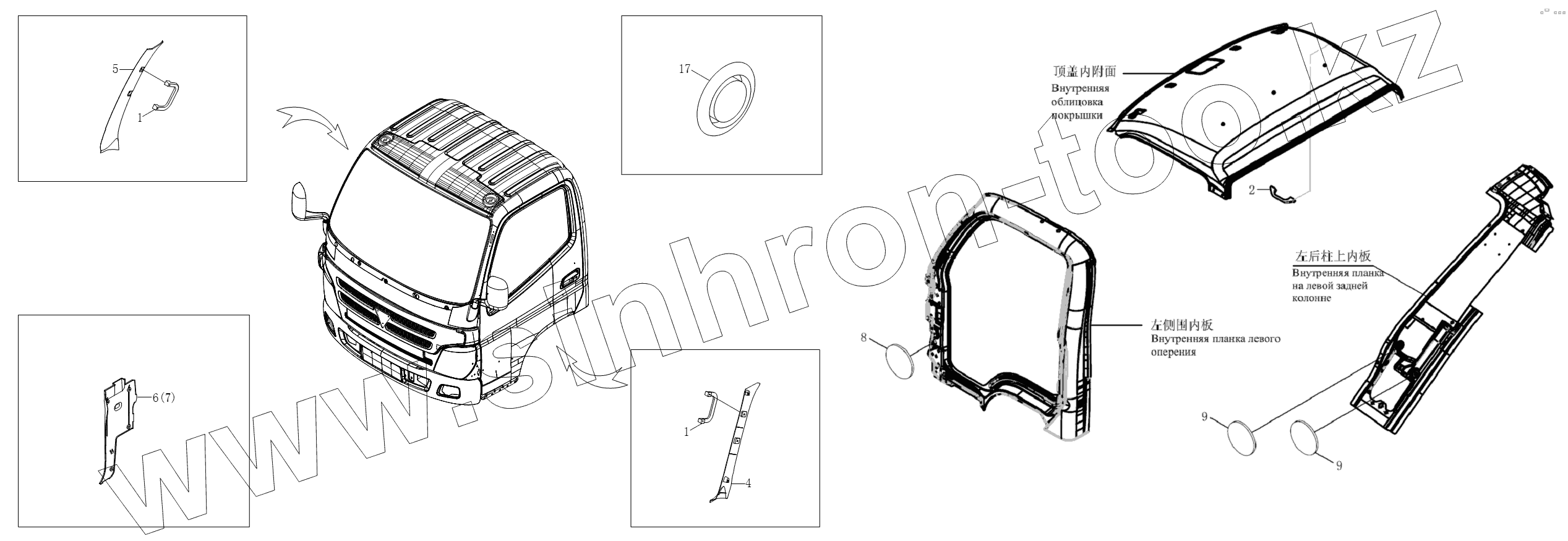 Каталог запасных частей к технике: Foton BJ1051, BJ1061 (Aumark). 1SB2005410103 Принадлежности бокового оперения